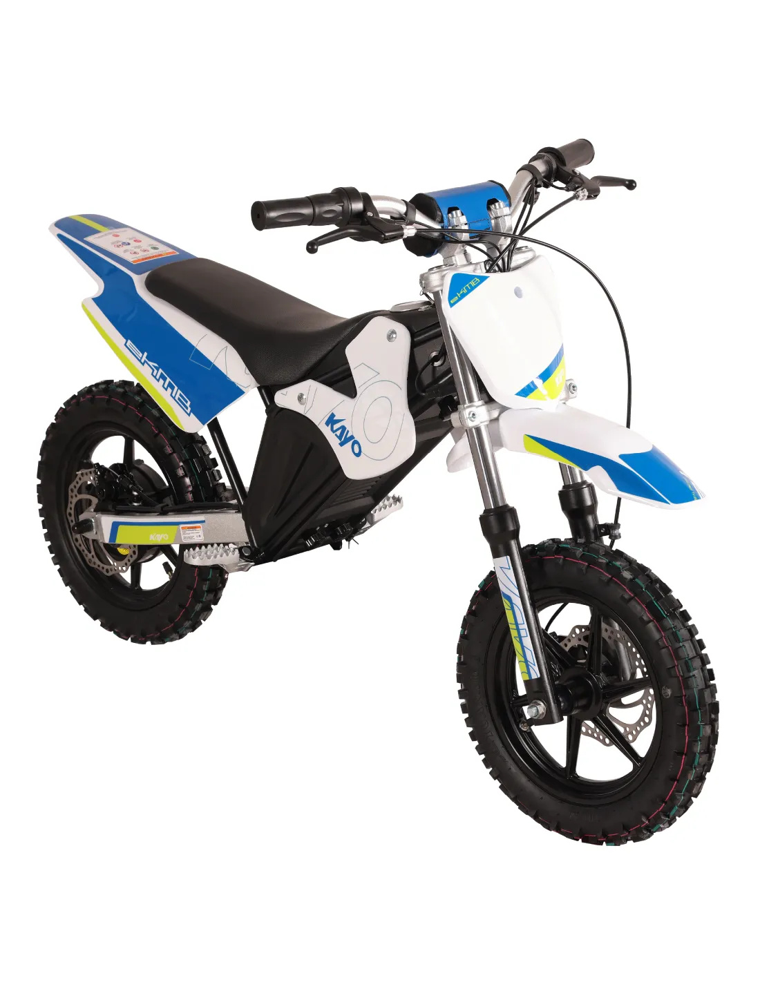 Das neue, überarbeitete Design des KAYO eKMB orientiert sich an aktuellen Styling-Trends und verleiht dem Bike einen dynamischen und modernen Look, der sofort ins Auge fällt. Schwarze Felgen und Rahmen unterstreichen den Charakter und heben das eKMB von anderen Kinder-Pitbikes ab, was bei jungen Fahrern Begeisterung und natürliche Neugier weckt.