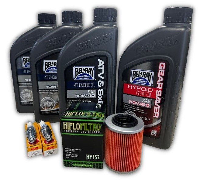 BelrayÖlwechselset - Wartungsset 3 Liter 10W-40 + Ölfilter HF152 + Zündkerzen + Getriebeöl für CFMoto Cforce 850 - 1000